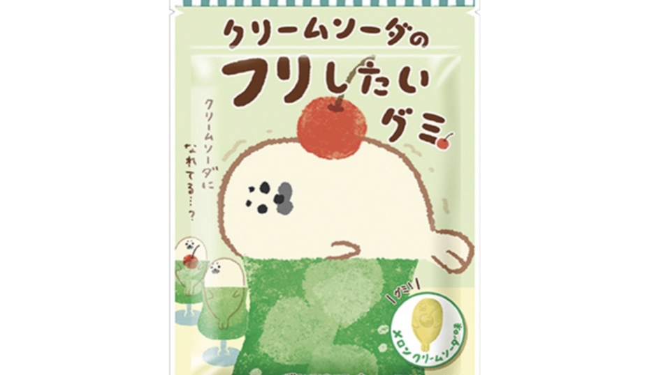 『お菓子などうぶつ工房』とのパッケージコラボ商品です。喫茶店のクリームソーダをイメージしたもちもち食感グミです。