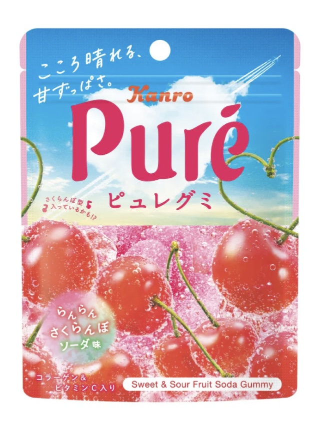 甘ずっぱいさくらんぼ×爽やかソーダの見た目もかわいい組み合わせ!春のうきうきする気持ちに寄り添う、ハッピーなピュレグミ。 ※2025年6月生産終了