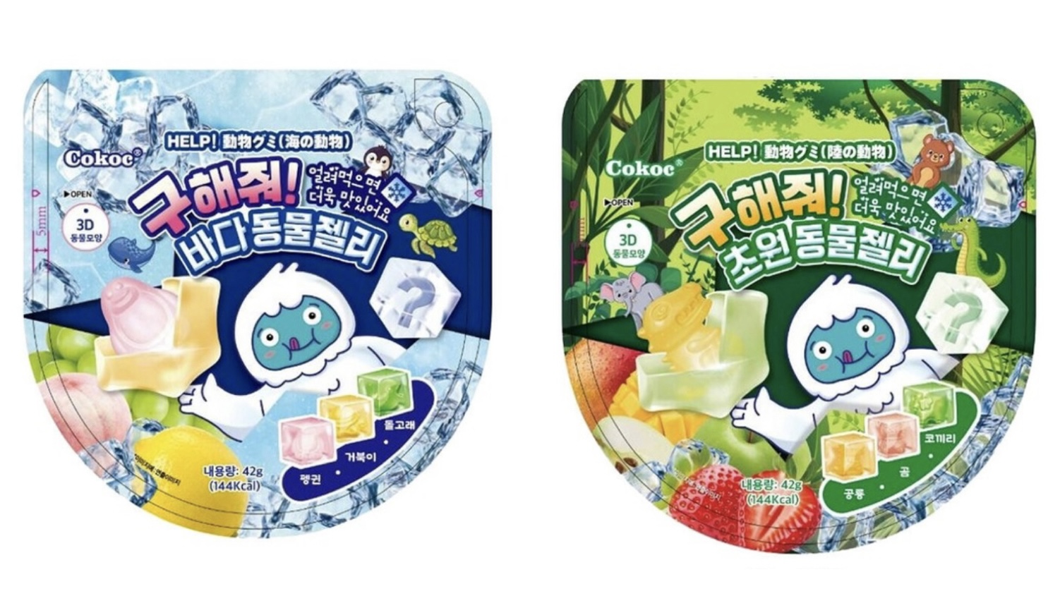海の動物はもも、ぶどう、レモン味。陸の動物はいちご、マンゴー、りんご味。
