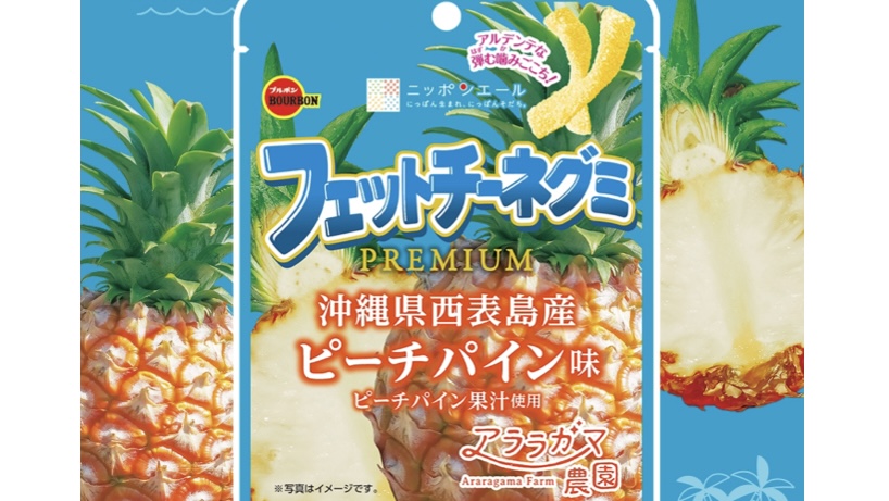 ニッポンエールコラボ商品!ブルボンとJA全農より「フェットチーネグミPREMIUM ピーチパイン味」が2025年5月27日に期間限定で新発売!