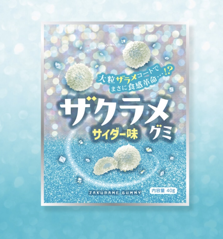 大粒ザラメコートによる「ザクザク」とした食感に加え、内側のグミ本来の「もちもち」とした食感という異なる2つの食感をひと粒に凝縮しました。さらに中心部にはサイダー味のジュレin!