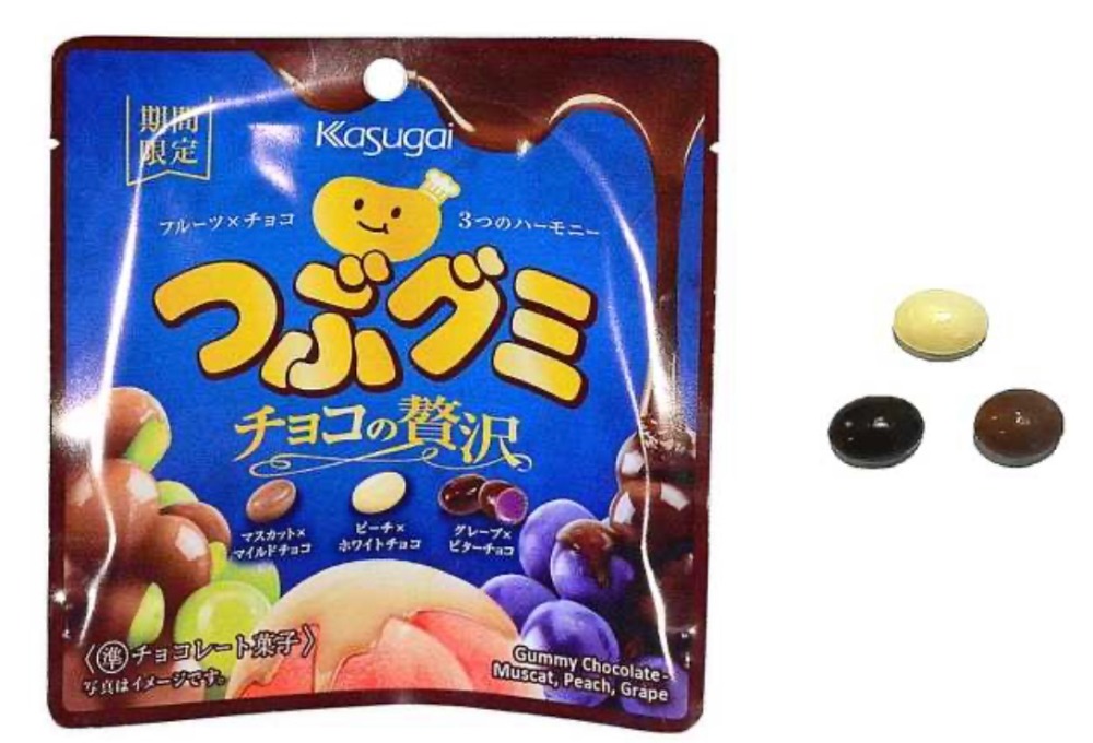 【春日井製菓】つぶグミ チョコの贅沢 春日井製菓Screenshot 2025.07.052026.01.21 メーカー 春日井製菓 商品概要 冬季期間に限定発売されているつぶグミ×チョコの特別品! マスカット×ミルクチョコ、ピーチ×ホワイトチョコ、グレープ×ビターチョコの3種類! 購入はこちら! Amazon ※2026年1月19日、各コンビニエンスストアにて新パッケージでリニューアル! ラインナップ