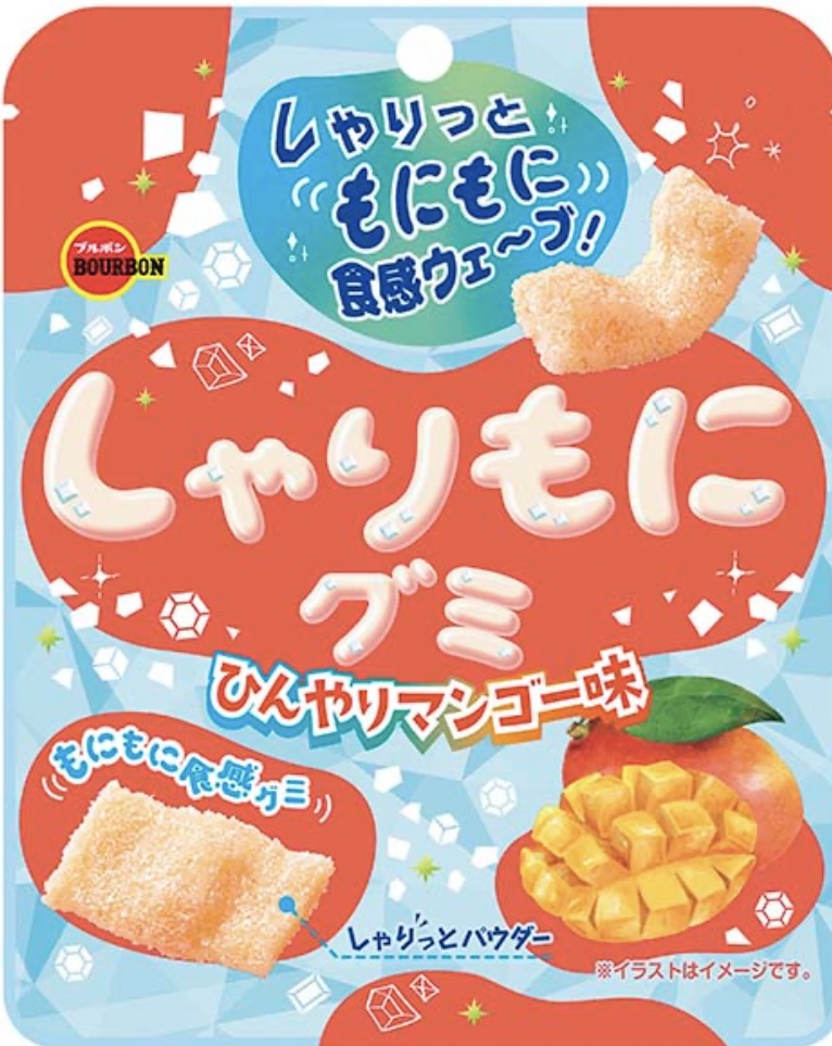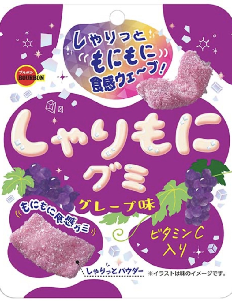 甘酸っぱしゃりっとパウダーともちむにグミの”しゃりもに食感”が楽しいグミ。