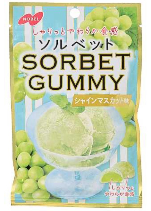 【ノーベル製菓】ソルベットグミ シャインマスカット味 ノーベル製菓 2025.11.222025.12.02 メーカー ノーベル製菓 商品概要 まるでソルベを食べているような体感を生み出す、しゃりっとやわらかな白桃味の新食感グミです。専門店のような世界観があふれるデザインに仕上げました。 ソルベットグミ第二弾としてマスカット味が新発売! ※2025年12月1日から全国の量販店にて販売開始 購入はこちら! Amazon その他ソルベットグミはこちら! 【ノーベル製菓】ソルベットグミまるでソルベを食べているような体感を生み出す、しゃりっとやわらかな白桃味の新食感グミ。 ラインナップ