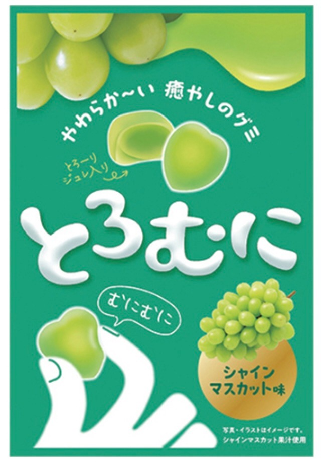 やわらかくてむにむにした食感が特徴のグミです。シャインマスカットの味わいがとろっと口いっぱいに広がります。