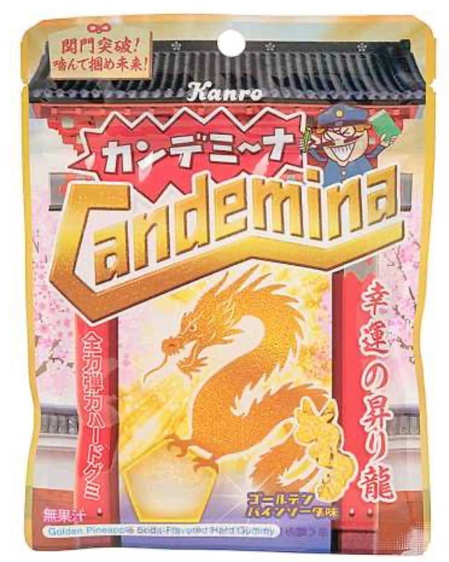 【カンロ】カンデミーナグミ幸運の昇り龍ゴールデンパインソーダ味 カンロ 2026.01.04 メーカー カンロ 商品概要 カンデミーナに新フレーバーが登場!幸運の昇り竜をイメージした形のゴールデンパインソーダ味! ※2026年1月12日より全国のコンビニエンスストアにて販売開始 ラインナップ