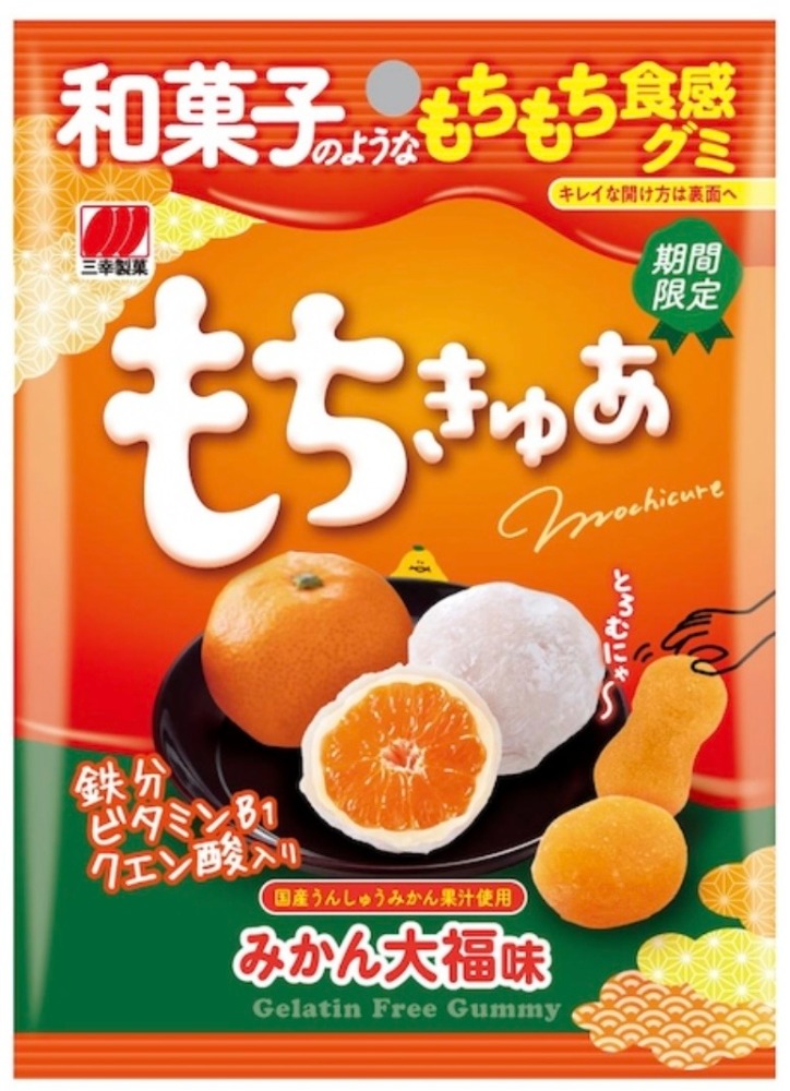 国産うんしゅうみかん果汁を使用しており、みかんの酸味とあんこの甘みがクセになる「みかん大福味」を手軽にひとくちでお楽しみいただけます。