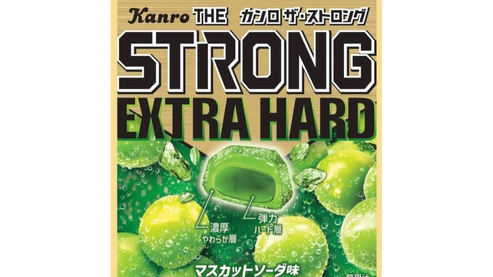 濃厚な味わいの“濃厚やわらか層”で“弾力ハード層”を包み込む「Wストロング製法」により、他のハードグミとはひと味違う“逆弾力”の「やわカタW食感」をお楽しみいただける「カンロ ザ・ストロング」シリーズの第3弾!