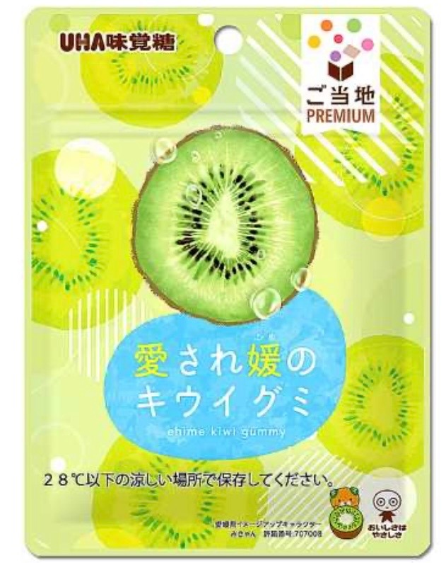 味覚糖の「ご当地PREMIUM」シリーズに、愛媛県産のキウイフルーツを素材に使ったグミが登場。