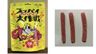 上間菓子店 【上間菓子店×旺旺・ジャパン】スッパイ【スッパイマン】大作戦 うめ味 上間菓子店のスッパイマングミと旺旺・ジャパンのスッパイ大作戦がコラボ!スッパイマングミが細長いスティック状のグミになった!※2025年6月9日よりファミリーマートにて先行販売。 2025.06.12 上間菓子店旺旺・ジャパン