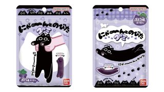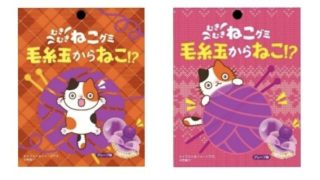 メーカー クリート商品概要毛糸に見立てたグミを剥くと中からねこ型のグミが出てくる、見た目や食感の変化を楽しめる商品です。グレープ味。※期間限定販売品ラインナップ キーワードぶどう・グレープ